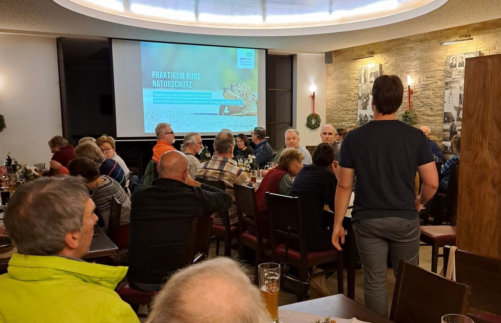 Mit „Das Beste kommt zum Schluss“ stellte die Kreisvorsitzende Julian Erler vor, der 10 Wochen lang als Forststudent ein Praktikum bei der Kreisgruppe machte und die Dokumentation der BN-Grundstücke für den PC aufbereitete und viele Daten vor Ort erhob. In einem Kurzreferat stellte er seine Arbeit vor und zeigte den Anwesenden, auf welche Unterlagen sie jetzt zurückgreifen können.