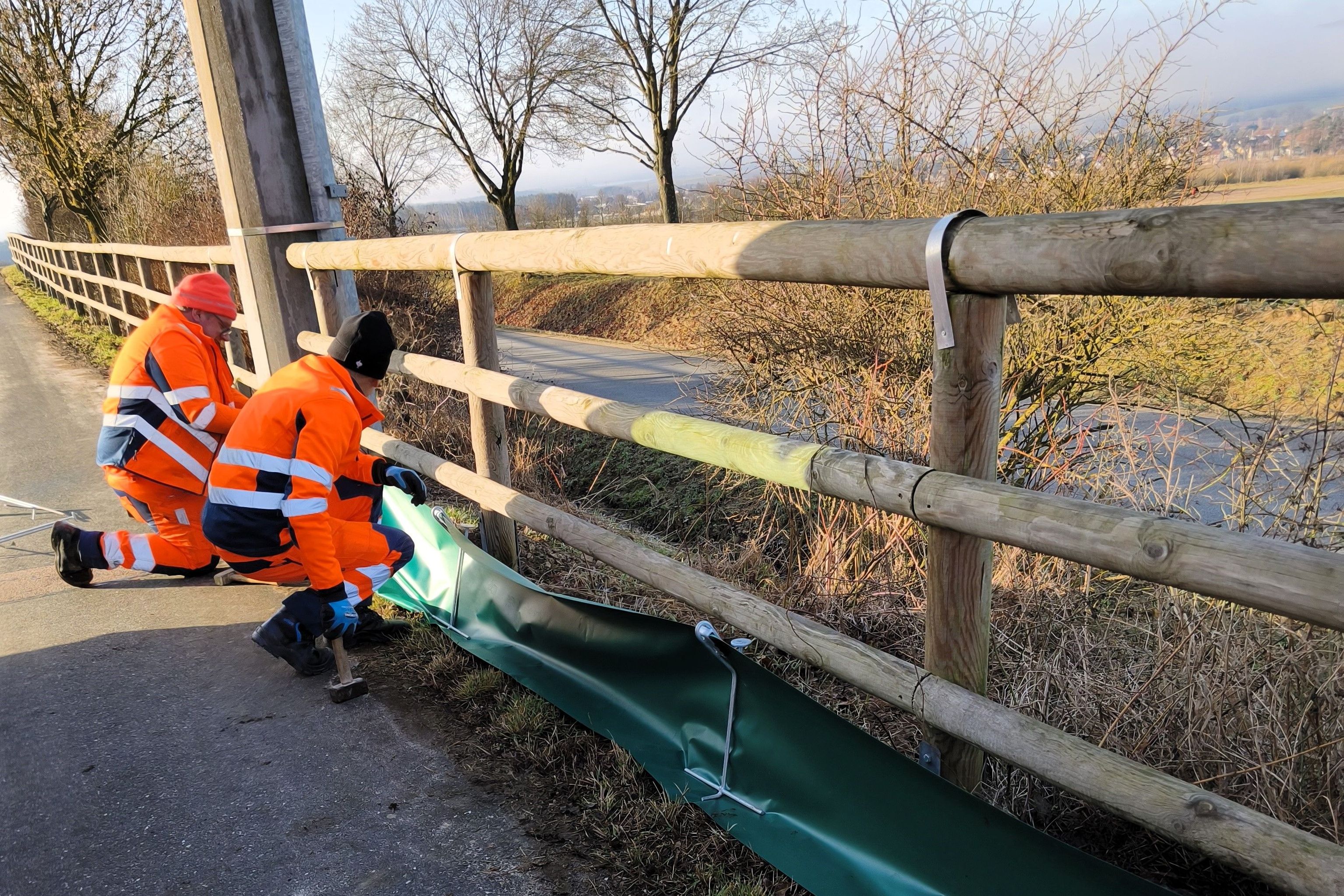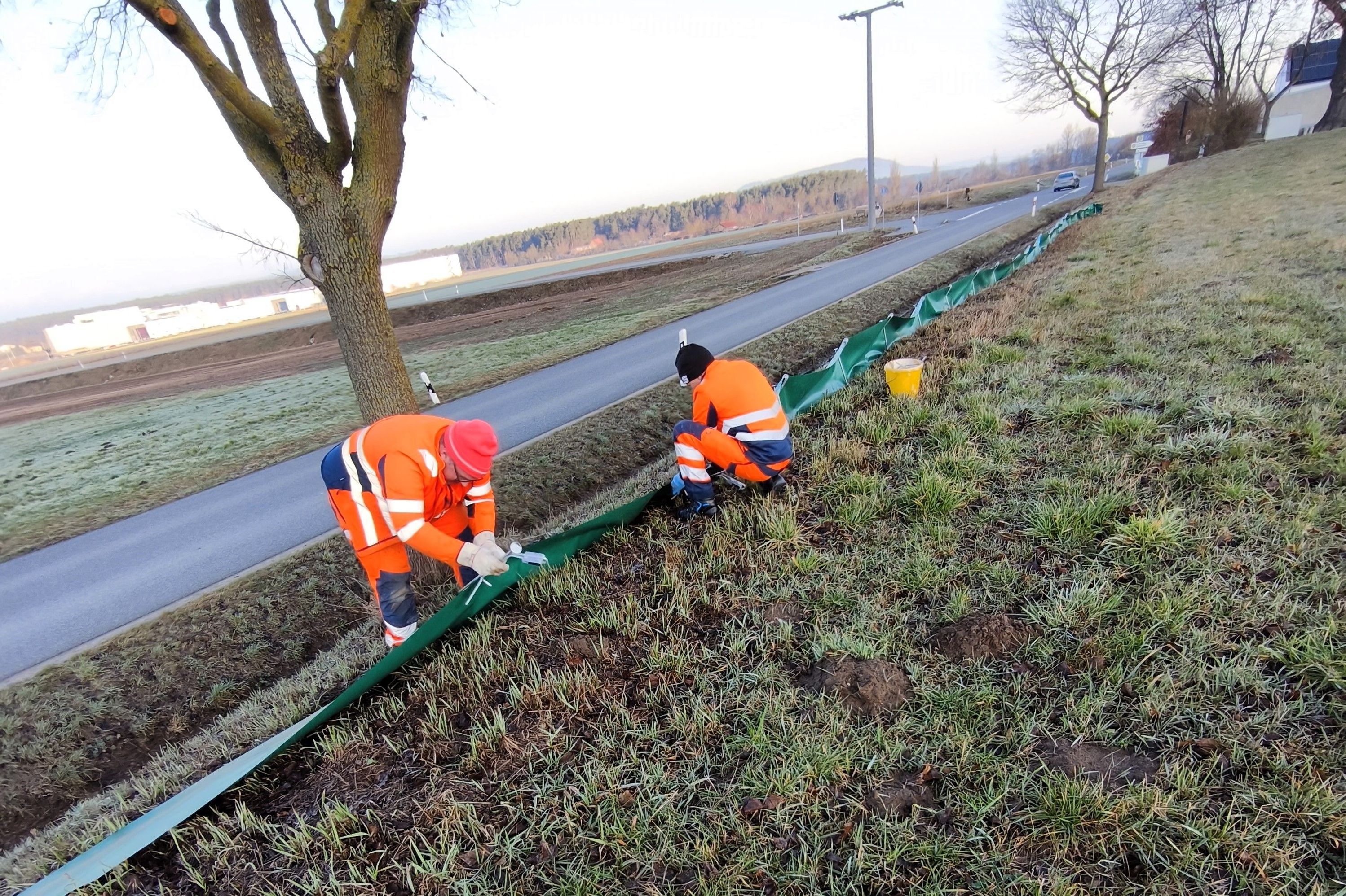 Am 27. Februar 2026 vormittags hat der Bauhof von Mühlhausen den Amphibienschutzzaun in Wappersdorf wieder aufgebaut. Bei den plötzlichen hohen Temperaturen war das gerade rechtzeitig, weil jetzt für die wechselwarmen Tiere die Winterstarre beendet ist. In den Eimern waren auch bereits Erdkröten und Teichmolche. Herzlichen Dank an Bürgermeister Dr. Hundsdorfer und den Bauhof für die Unterstützung.